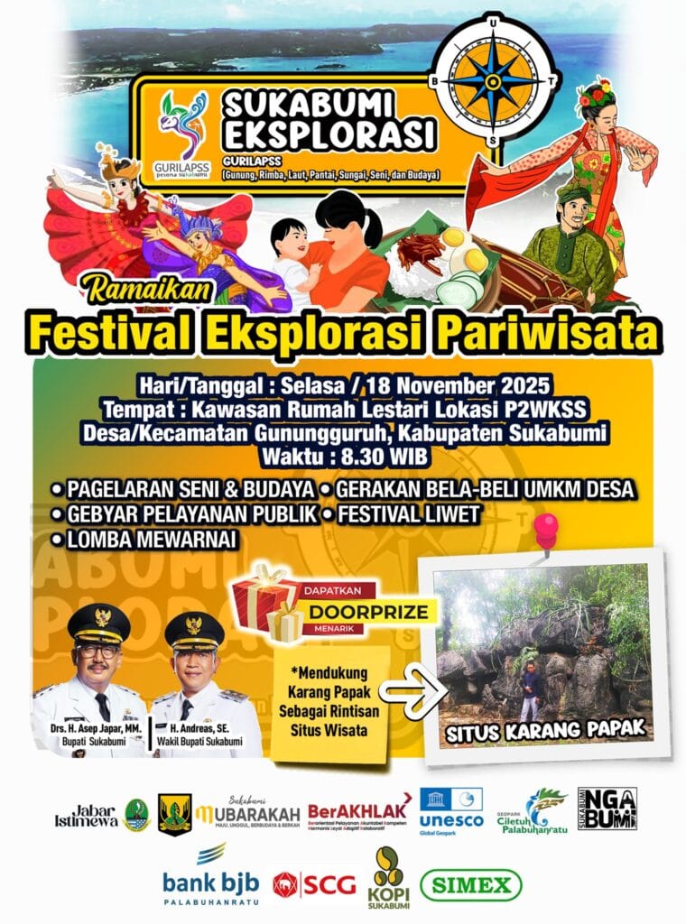 Mubarakah Festival Ekplorasi Parawisata Kab Sukabumi 2025 18 November 2025 0 Post navigationPrevious: Festival Ekplorasi Parawisata Kab Sukabumi 2025. Sekda” Bukan Sebatas Destinasi Tapi Industri Kreatif”Next: Bappelitbangda Sukabumi Gelar BIMTEK PENGINPUTAN DATA Konvergensi Percepatan Penurunan Stunting 2025 Berita Lainnya Mubarakah DUKUNG SWASEMBADA PANGAN, PEMKAB SUKABUMI MENERIMA PENGHARGAAN PRESIDEN REPUBLIK INDONESIA. 8 Januari 2026 0 Mubarakah Gimana baraya, jadi makin pengen cepat pulang kampung kan 7 Januari 2026 0 Mubarakah “SELAMAT TAHUN BARU 2026” 7 Januari 2026 0 Tinggalkan Balasan Batalkan balasanAlamat email Anda tidak akan dipublikasikan. Ruas yang wajib ditandai *Komentar *Nama * Email * Situs Web Simpan nama, email, dan situs web saya pada peramban ini untuk komentar saya berikutnya.