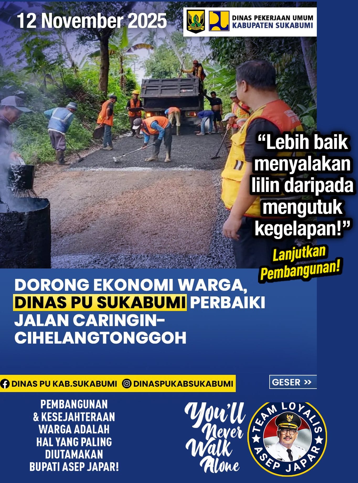 Mubarakah GIAT Dinas PU 13 November 2025 0 Post navigationPrevious: BUPATI DAN WAKIL BUPATI SUKABUMI HADIRI PARIPURNA, BAHAS SEJUMLAH AGENDA PENTINGNext: Langkah Nyata Kembangkan Pariwisata Palabuhanratu Kolaborasi Hebat di GIC Sukabumi Berita Lainnya Mubarakah Monitoring NATARU ASJAP 27 Desember 2025 0 Mubarakah Bertani itu Keren di SERGAP KORAMIL Cisaat 27 Desember 2025 0 Mubarakah Cerita KEREN Pa Ikin Panen Raya Akhir Tahun 27 Desember 2025 0 Tinggalkan Balasan Batalkan balasanAlamat email Anda tidak akan dipublikasikan. Ruas yang wajib ditandai *Komentar *Nama * Email * Situs Web Simpan nama, email, dan situs web saya pada peramban ini untuk komentar saya berikutnya.