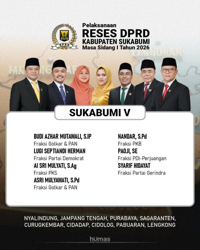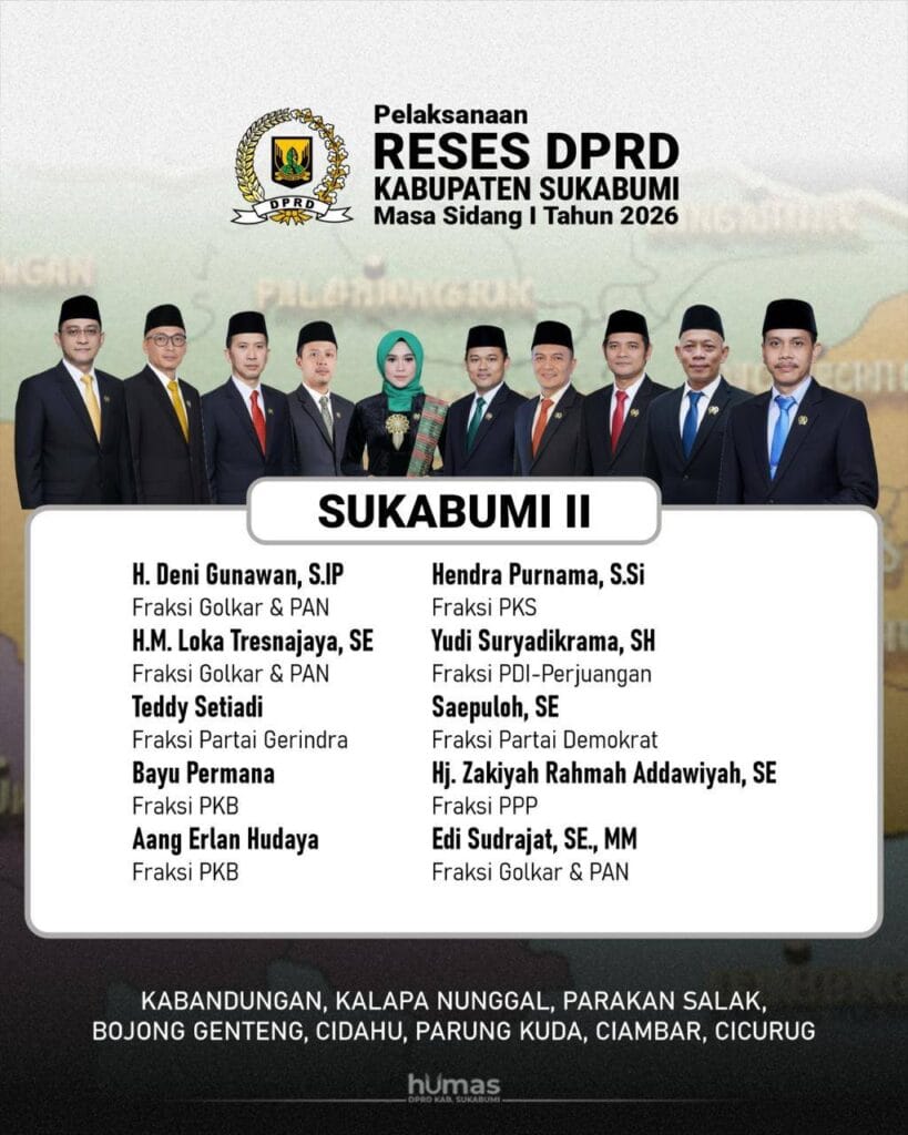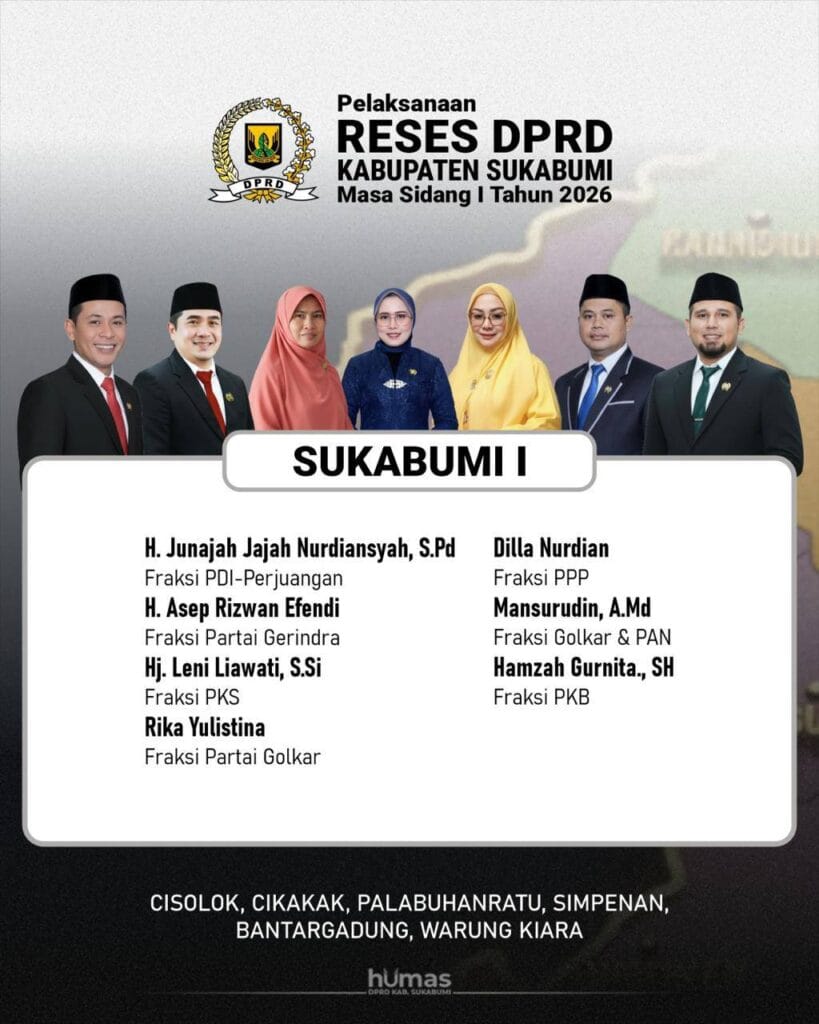 Sukabumi News Jadwal Reses DPRD Kabpaten Sukabumi Masa Sidang I 2026 29 Januari 2026 0 13 / 100 Didukung oleh Rank Math SEO Skor SEO Post navigationPrevious: TINGKATKAN LAYANAN KESEHATAN DAN KONEKTIVITAS, BUPATI ASJAP RESMIKAN IGD PUSKESMAS DAN JEMBATAN KALIBUNDERNext: RESMI DIKUKUHKAN, 11 RIBU ANGGOTA SATLINMAS KABUPATEN SUKABUMI KINI MILIKI LEGALITAS KUAT Berita Lainnya Sukabumi News RAMADHAN MASLAHAT: SEKWAN KABUPATEN SUKABUMI PERKUAT INTEGRITAS PEGAWAI LEWAT ANSYITHOH 1447 H 24 Februari 2026 0 Beranda Sukabumi News MENYAMBUT RAMADHAN 1447 H: DPRD KABUPATEN SUKABUMI AJAK WARGA PERERAT TALI SILATURAHMI 16 Februari 2026 0 Sukabumi News MENYAMBUT RAMADHAN 1447 H: PERUMDA AM TJM KABUPATEN SUKABUMI AJAK MASYARAKAT PERKUAT SPIRITUALITAS 16 Februari 2026 0 Tinggalkan Balasan Batalkan balasanAlamat email Anda tidak akan dipublikasikan. Ruas yang wajib ditandai *Komentar *Nama * Email * Situs Web Simpan nama, email, dan situs web saya pada peramban ini untuk komentar saya berikutnya.
