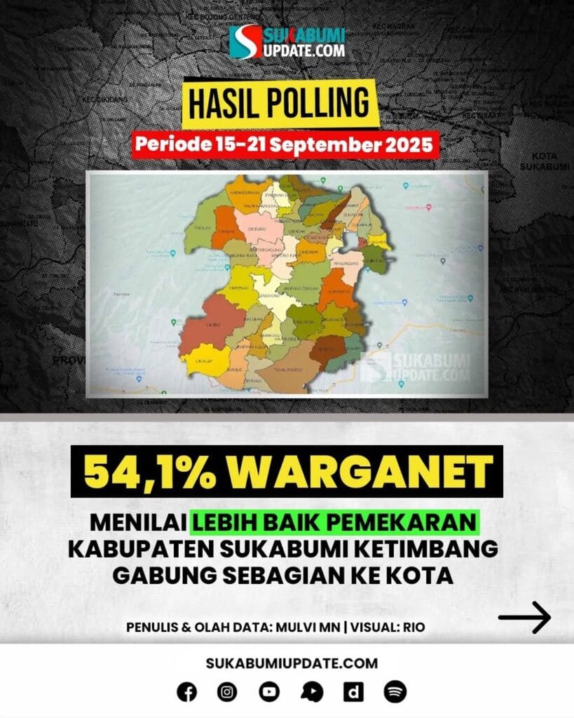 Mubarakah wacana pemekaran Kabupaten Sukabumi, Jawa Barat, mendapat dukungan dari Bupati Sukabumi Asep Japar 23 September 2025 0 7 / 100 Didukung oleh Rank Math SEO Skor SEO Post navigationPrevious: Perawatan M.Jihad AlfariziNext: HUT PERUMDA AMTJM, BUPATI MINTA TINGKATKAN PELAYANAN KEPADA MASYARAKAT Berita Lainnya Mubarakah Monitoring NATARU ASJAP 27 Desember 2025 0 Mubarakah Bertani itu Keren di SERGAP KORAMIL Cisaat 27 Desember 2025 0 Mubarakah Cerita KEREN Pa Ikin Panen Raya Akhir Tahun 27 Desember 2025 0 Tinggalkan Balasan Batalkan balasanAlamat email Anda tidak akan dipublikasikan. Ruas yang wajib ditandai *Komentar *Nama * Email * Situs Web Simpan nama, email, dan situs web saya pada peramban ini untuk komentar saya berikutnya.